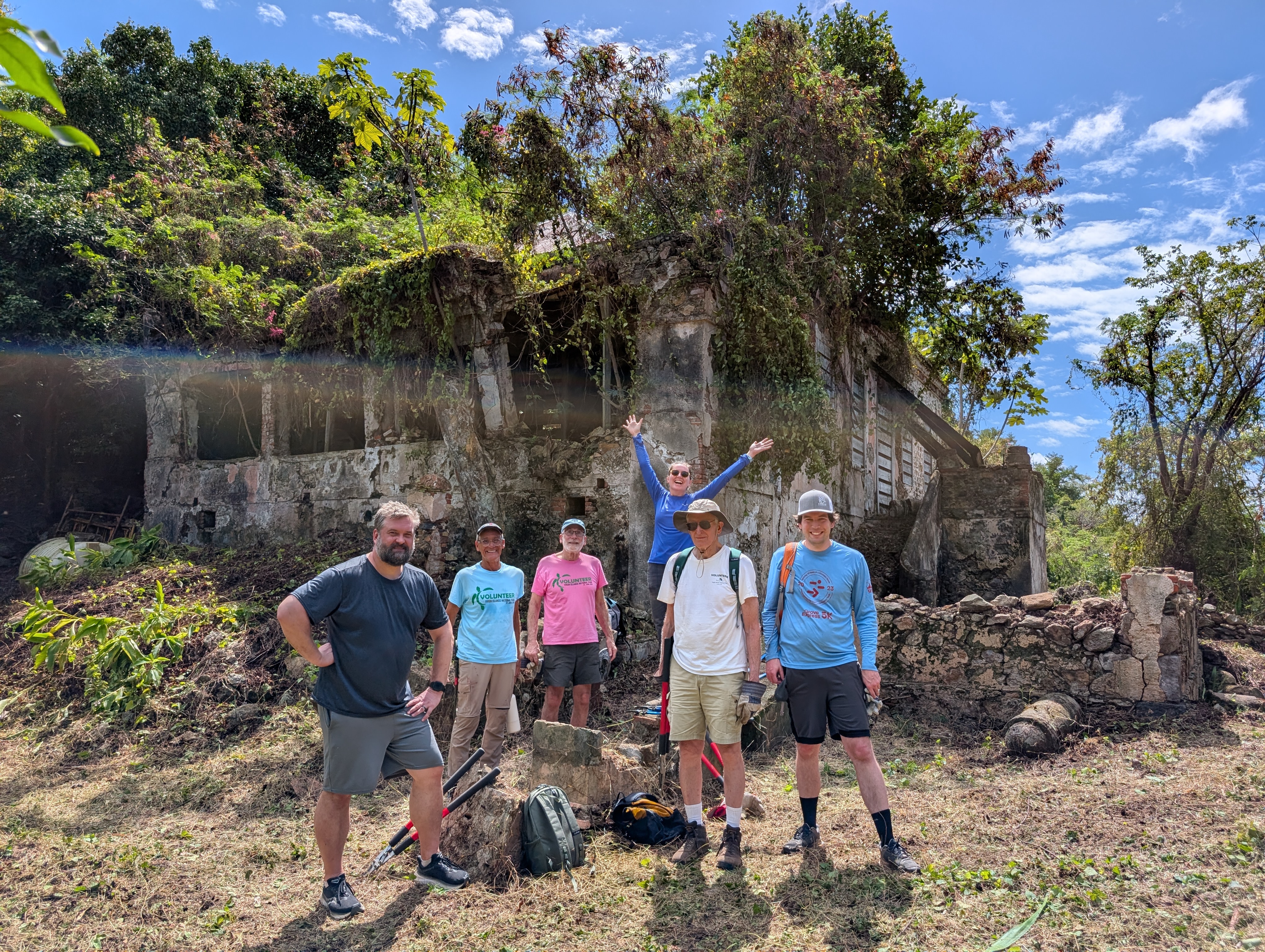 On this day we clear out the Reef Bay Great House, a sugar plantation relic now enveloped by a scourge known variously as coral vine and Mexican creeper. We hack back the jungle and restore some of its complex grandeur. Such as we can: a lintel along the portico now dangles in the breeze, its threat to pull down one side of the façade held only by a single strand of rebar. There is little chance of any stabilization from NPS, and a tragic fate for the Great House’s tragic legacy. But for now there is an easy satisfaction in passing on this privilege I enjoy, to cut out windows on to memory and beauty in a place where people come for joy and escape.