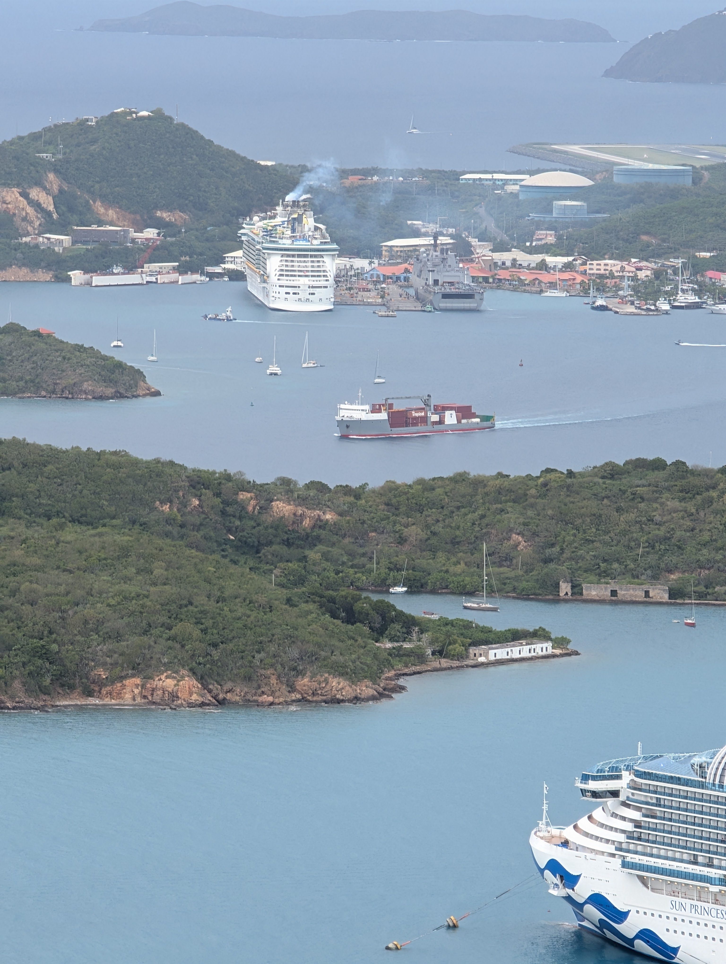 On the Thursday of my week on St. Thomas, the USS Stockdale powers into port. This AEGIS destroyer has spent recent years guarding commerce on the Red Sea from Houthi rebels, though it recently joined the Caribbean buildup that accompanied the ouster of Venezuelan despot Nicolás Maduro. It sits in Crown Bay next to Royal Caribbean’s Independence of the Seas, dwarfed by the pleasure cruise craft. The twin faces of empire, a reminder of the force that makes possible the leisure on St. Thomas, and the reason the U.S. collected these islands from the Danish during World War I. That treaty forsook an American claim to Greenland, and while I cannot comment on the relative value of any rare earth metals, I will say the beaches that treaty brought beneath the stars and stripes are much better than the alternative down the road not taken.