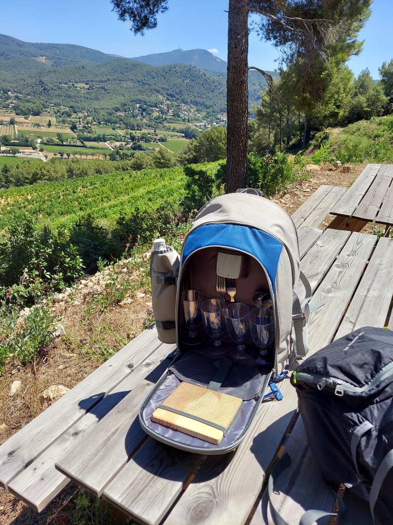 In Toulon, a port and naval base just southeast of Marseille, ten members of our party organize our own tour, which operates under the working title “Something Involving Karl and Wine.” After some momentary fumbling we acquire a motorcade of three cabs for a ride up through the dry Provencal coastal range to Domaine Fonts des Peres, a winery in the Bandol region. Here, the Mourvèdre grapes produce rosés at the bottom of the hill and the designated Bandol reds at the top. A vintner leads us through a tour and a tasting (including some of the best gin I’ve ever had, to go with the wine) before we are presented with picnic backpacks of quiches and focaccia and cheesecakes, and we select a few of the wines we like and stroll off for a leisurely picnic in the middle of the vineyard.