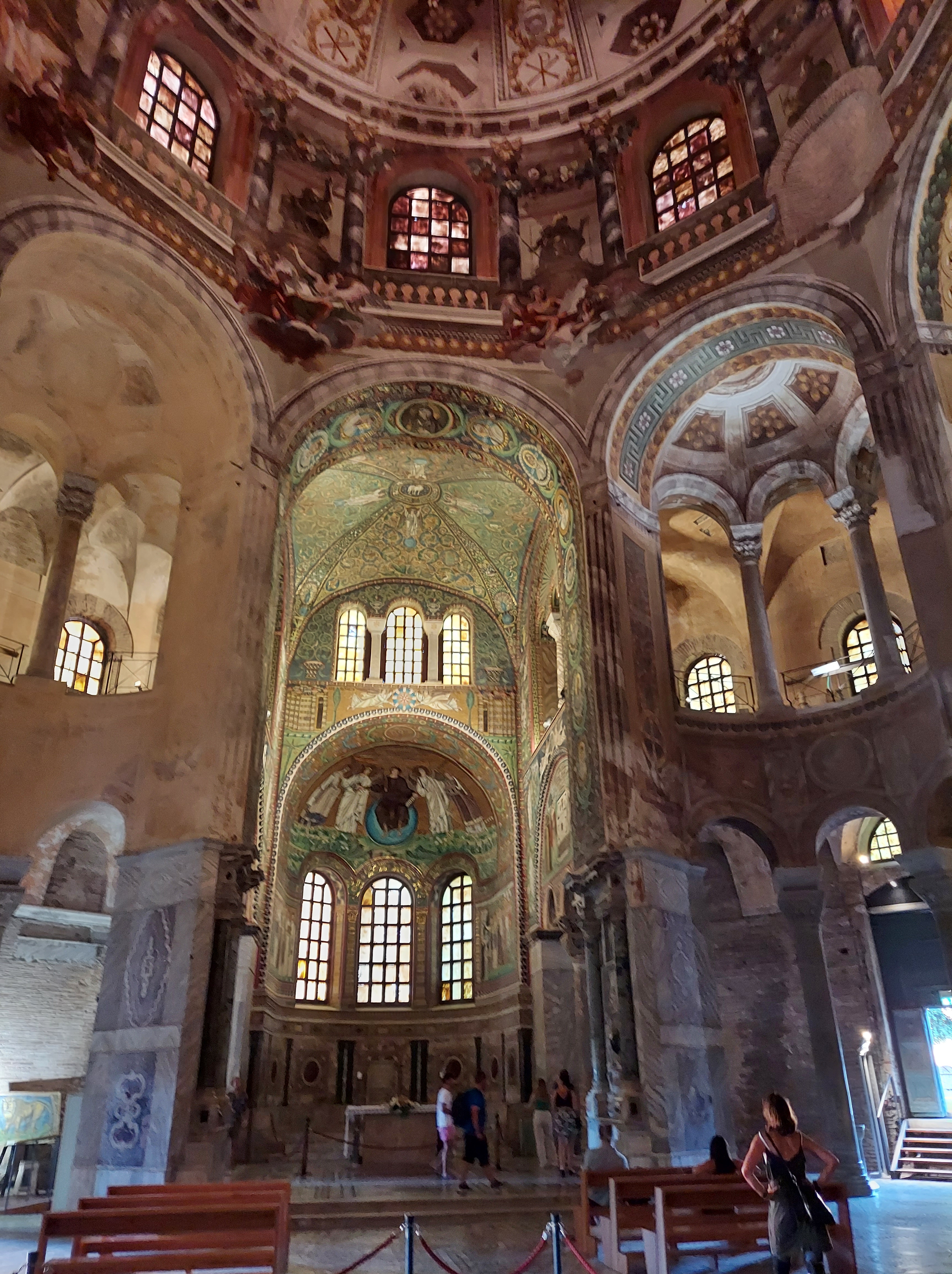 Venice has banned large cruise ships from its harbor, so our cruise starts from the port city of Ravenna two hours to the south. Ravenna has, quietly, slithered its way into world history: it was the Roman capital for a hot second after the sack of Rome, and it serves as the final resting place of Dante Alighieri. Most of all, though, it is known for its mosaics, and four of us make a circuit through the city on our first afternoon there, freed to move at our own pace through sparsely populated streets. We gaze at the art, stop by a café near Dante’s tomb, and pause beneath the cypresses at San Vitale, the cicadas droning in the midsummer heat. We gather ourselves at the Fargo Café, which serves non-Italian craft beer for reasons we will soon come to understand, and then cross paths with an aunt and uncle who aren’t cruising but are along for these first few stops. We endure an unfortunate tasting of Italian beer and then atone for this assault on our palettes with a dinner on a courtyard recommended by a local. The meal proves to be a four-hour affair, so it’s a good thing the cruise ship isn’t going anywhere tonight.