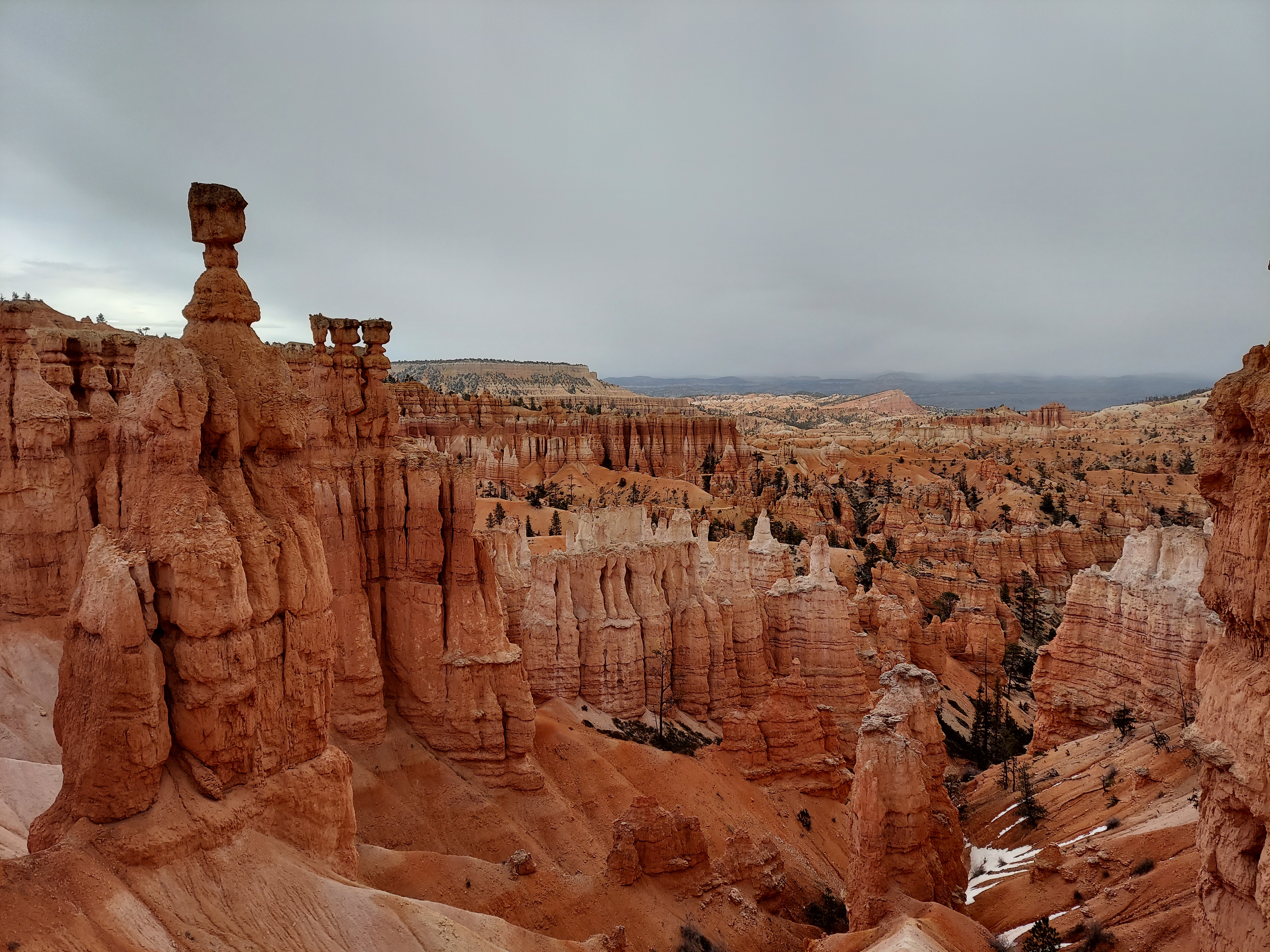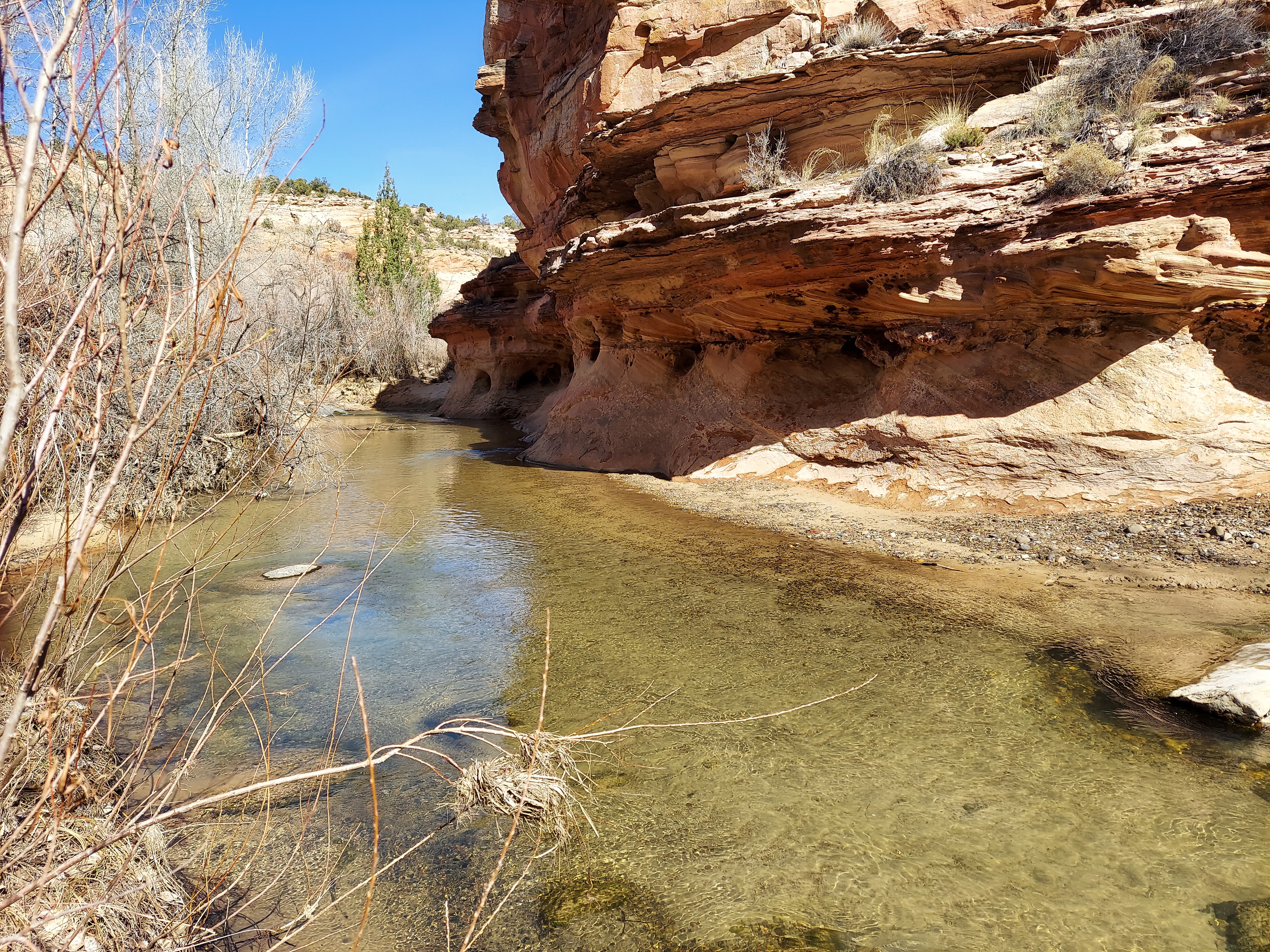 The fickle San Juans weather continues on the hike out on day four. Rain gear goes on and off all day as we descend the East Fork, a graceful vale that proceeds from high peaks to scree fields to avalanche-prone slopes of spruce to red towers reminiscent of Zion. Right at a shaky river crossing, however, comes the coup de grace: a sudden onslaught of hailstones, many as large as chickpeas, comes crashing down and sends us hustling for tree cover. After they have fallen the landscape is strewn with tiny white pellets, the walls to the east coated and glittering and the rutted path below us now a soupy mess of water and floating ice. This is not the least pleasant thing underfoot on the East Fork, however: that title goes to the cowpies, left by a lowing chorus of cattle that harmonizes as we walk by. At least we evaded the sheepdogs.