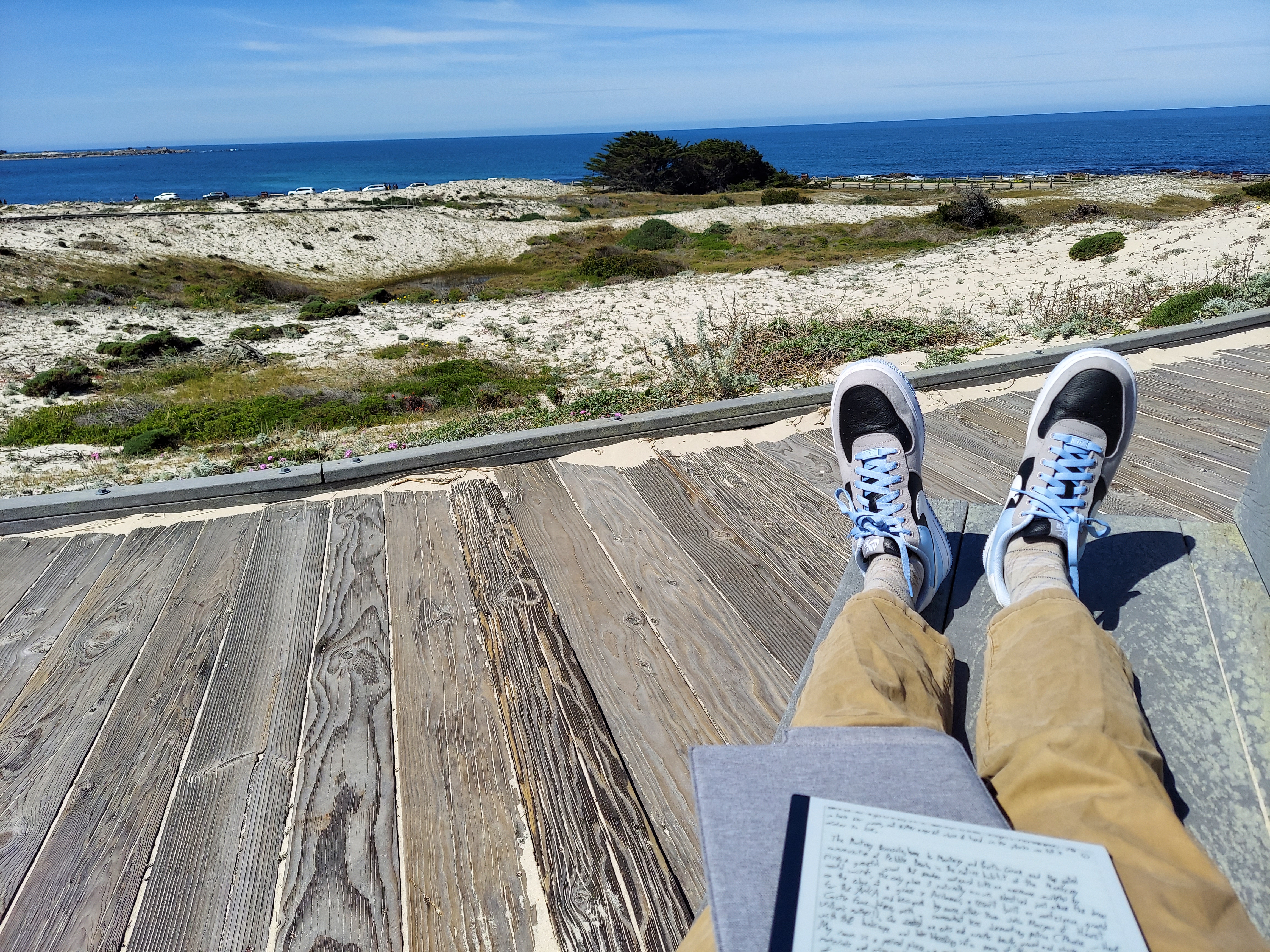 The friends I visit this week all have their off ramps. All three pursue interesting work somehow tied up in the fate of the state. One has a family to frame everything, and another is beginning down that road, too; the third has made an art of filling a schedule in ways that would overwhelm most mere mortals. All three explore faith in a place where it is not much of a discussion topic, from intellectual dabbling to full-on belief. My own road trip goes on, with stops to sponge up all they have to offer in an endless quest for more material, both for the words I write and the larger story over which I have some authorship. And I would like to imagine that, if I should return to Morro Bay again in another ten or twenty years, I will make this current version of myself proud of the story I’ve written since. For now, though, I will drift off, my mind back on the beach, one with the crashing waves.