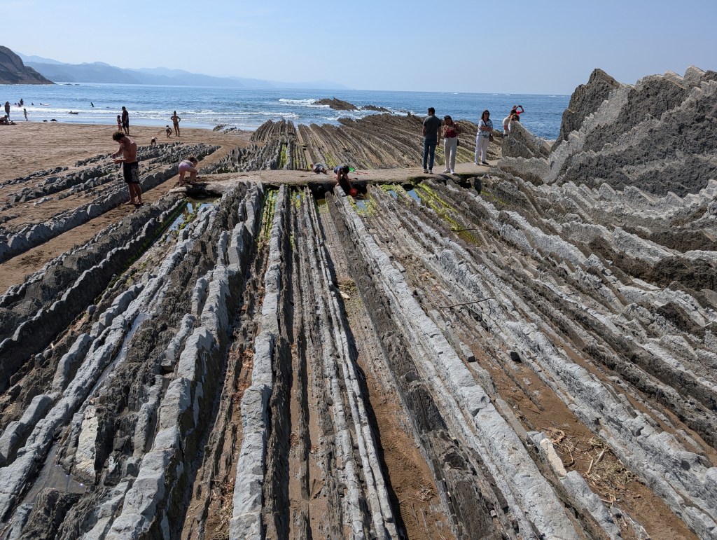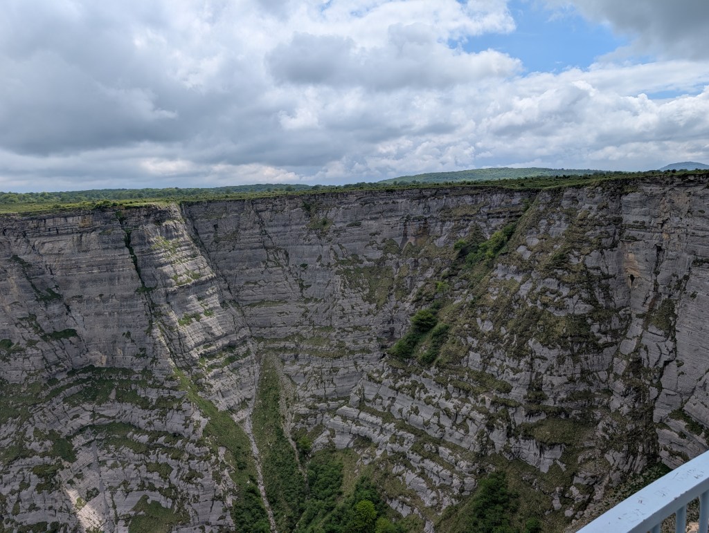 Sated on San Sebastián and ready to head the province of La Rioja, Andrew and I pick up a rental Cupra, which is Spain’s effort at a sporty car. We roll down a winding Basque tollway and up into the Cantabrian Mountains, where we seek out the Salto del Nervión. In wet times this is the highest waterfall in Spain, but today, it is just a pretty cliff. We chat with two older ladies who are taking a new car for a spin and get some sense of how it should look. The forests are lush, the karst formations jarring, and a few toros wander on to the road. We are back in rural Spain.