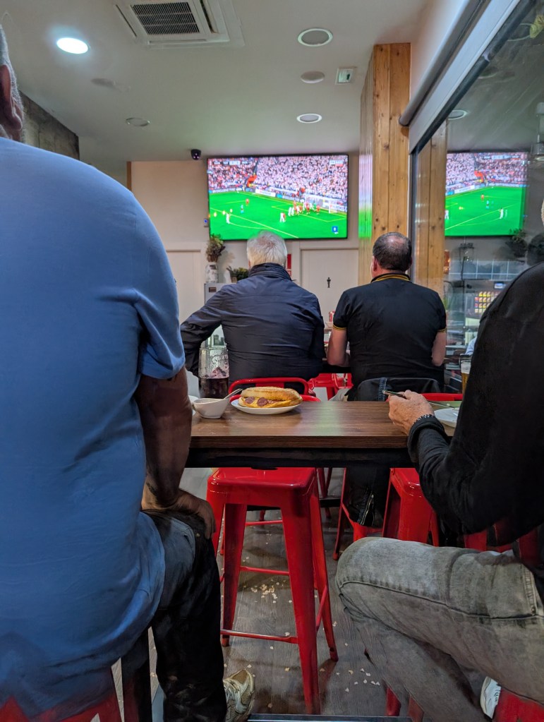 Our two nights here, meanwhile, are a marked contrast. On the first we eat at Allegar, the restaurant at Santa Maria Briones. Seventeen small plates come out through the course of the tasting menu, each with a major element from Rioja itself, along with wines to match. The three-hour tour is a culinary peak of a trip of nonstop great food. The next night, Andrew, a diehard fan of Tottenham Hotspur, must find a spot where we can watch Spurs’ Europa League final against Manchester United in Bilbao. We wind up in an Haro sports bar surrounded by large, booze-fueled Spanish men. They approve of our allegiances (“fook Mahnchesta”) and provide some high-fives when Spurs, one spot above relegation from the Premier League, improbably hold off United in a fairly disgusting soccer game. The aesthetics do not matter to Andrew, who is giddy, and I am amused as we watch Spanish sports talk into the night.